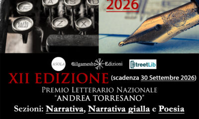 La Gilgamesh Edizioni ha indetto la dodicesima edizione del Premio Letterario di Narrativa e Poesia “Andrea Torresano”. Sono previste TRE Sezioni, A. Opera di Narrativa a...