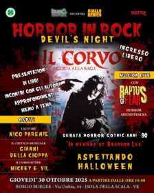 Isola della Scala, 27 settembre 2025 – La notte del 30 ottobre, alle porte di Halloween, Isola della Scala si tingerà di nero: torna l’appuntamento dedicato alla cultura del brivido “HORROR IN ROCK”, che per l’occasione realizza una speciale “DEVIL’S NIGHT”, una serata unica che unirà musica, cinema e letteratura in un intenso omaggio al film cult Il Corvo, pellicola anni ‘90 diretta da Alex Proyas e tratta dall’omonimo fumetto di James O’Barr, entrata di diritto nella leggenda anche per la tragica e prematura scomparsa di Brandon Lee sul set.