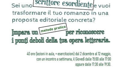 Sono ufficialmente aperte le iscrizioni per il Corso di Editing per scrittori non professionisti, già in possesso di un romanzo da rendere un prodotto editoriale credibile....